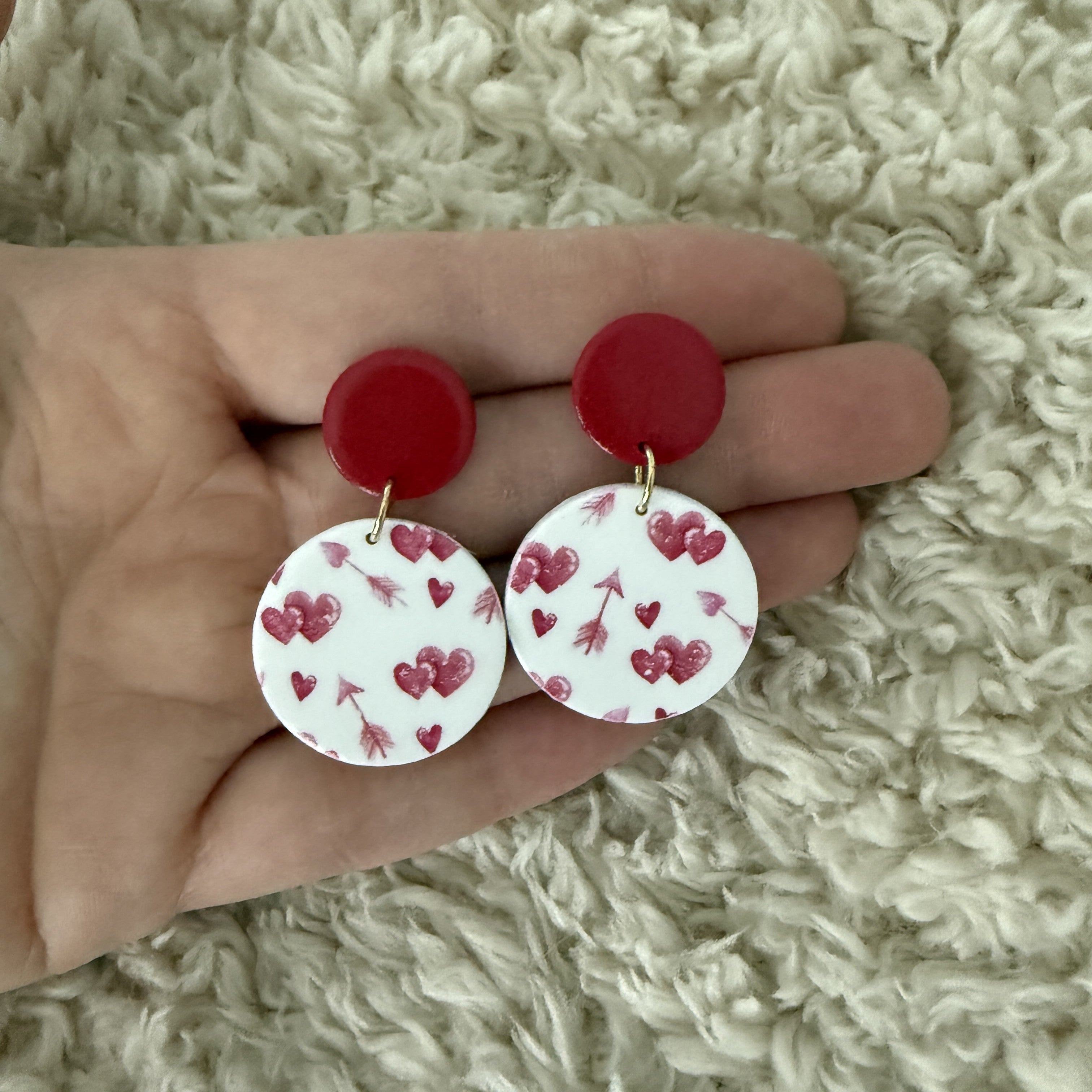 Deze Circle Charm – Cupid’s Kiss straalt pure liefde uit. De warme rode stud combineert prachtig met de witte hanger vol handgetekende hartjes en pijltjes, als een speelse knipoog naar Cupido. Licht, comfortabel en perfect om je outfit een subtiel romantisch accent te geven - ideaal voor elke dag of een liefdevolle gelegenheid.